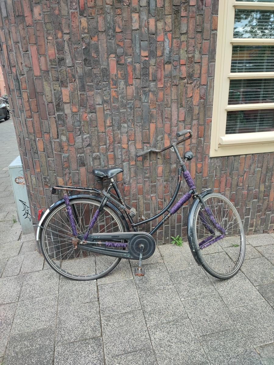 Cortana damesfiets zwart met paarse stof